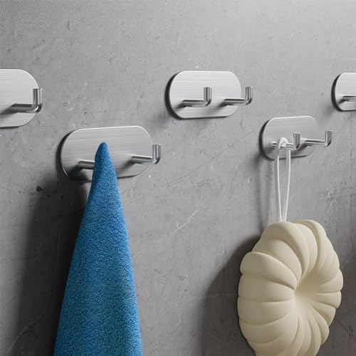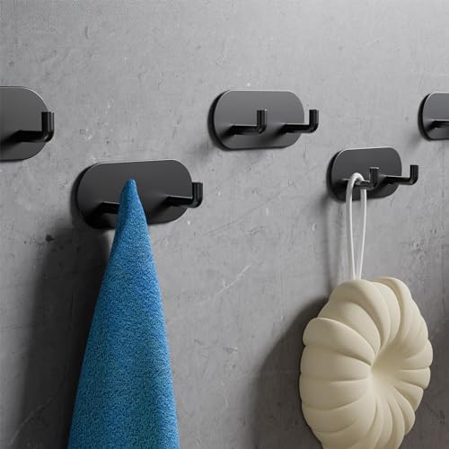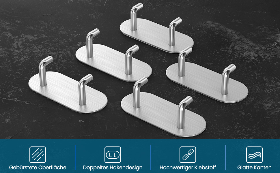 Mit fünf selbstklebenden Handtuchhaken maximieren Sie die Effizienz Ihrer Wandnutzung. Das durchdachte Doppelhaken-Design ermöglicht das Aufhängen mehrerer Gegenstände, von Handtüchern über Bademäntel bis hin zu Schals und Mänteln. Diese Flexibilität macht die Haken ideal für vielseitige Anwendungen in Badezimmer, Schlafzimmer, Küche oder sogar im Wohnzimmer. Organisieren Sie Ihre Haushaltsgegenstände und schaffen Sie Ordnung in Ihrem Zuhause.