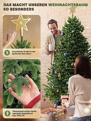 Die exquisit gestalteten Nadeln sorgen für ein authentisches Erscheinungsbild. Freuen Sie sich auf einen Weihnachtsbaum ohne PVC-Stamm, kahlen Stellen oder dem lästigen Nadeln. Der künstliche Weihnachtsbaum Nordfichte bietet nicht nur eine langlebige und nachhaltige Lösung, sondern auch die Möglichkeit, die Tradition des Weihnachtsbaum-schmuckens in vollem Umfang zu genießen.