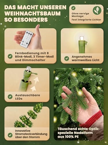 Dank des innovativen Regenschirm-Mechanismus entfalten sich die Äste beim Aufbau automatisch. Sie müssen lediglich die Zweige nach Belieben anordnen, um die perfekte Form des Baumes zu erreichen. Dieser Aufbau ist nicht nur schnell, sondern auch äußerst benutzerfreundlich – ideal für stressfreie Feiertage!