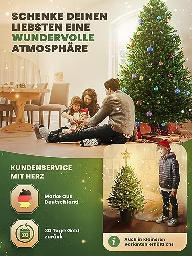 Mit einer beeindruckenden Höhe von 180 cm und einem Durchmesser von 120 cm fügt sich dieser Weihnachtsbaum harmonisch in jede Umgebung ein. Ob im Wohnzimmer, Esszimmer oder sogar im Büro – der Baum sorgt für festliche Stimmung und zieht alle Blicke auf sich. Der stabile, FSC-zertifizierte Holzständer garantiert sicheren Halt und unterstreicht die Nachhaltigkeit dieses Produkts.