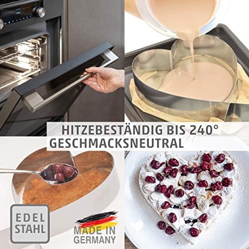 Unser Herz-Tortenring besteht aus hochwertigem Edelstahl, der nicht nur langlebig, sondern auch hitzebeständig bis 240°C ist. Diese Eigenschaften sorgen dafür, dass Sie sich beim Backen voll und ganz auf die Kreation Ihrer herzlichen Meisterwerke konzentrieren können, ohne sich um Verformungen oder Materialschäden sorgen zu müssen.