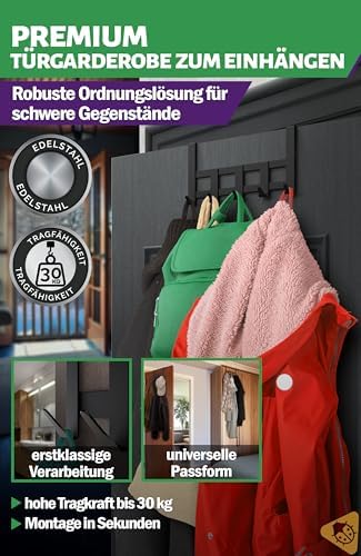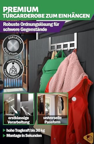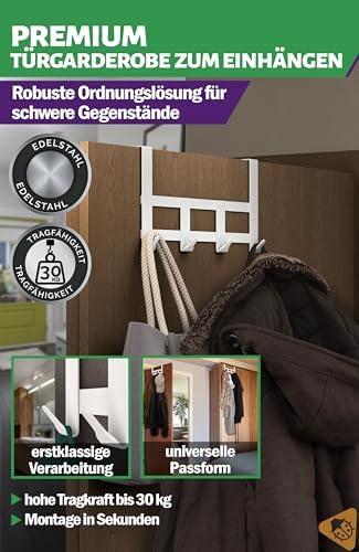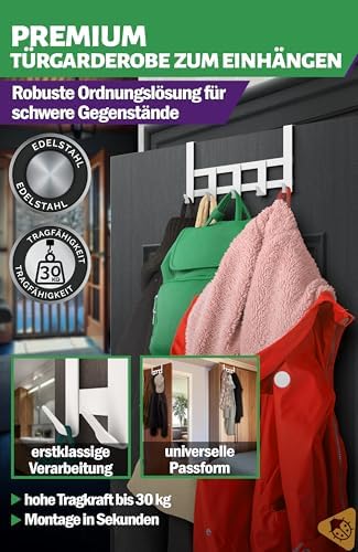 Mit dieser Premium Türaufhänglösung erhöhen Sie die Ordnung und den Komfort in Ihrem Wohneigentum. Investieren Sie in eine hochwertige Garderobe, die Ihre Anforderungen übertrifft!
