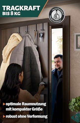• Hohe Tragkraft: Jeder Haken kann bis zu 8 kg Gewicht tragen, ideal für Jacken, Handtücher und Taschen.