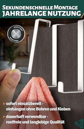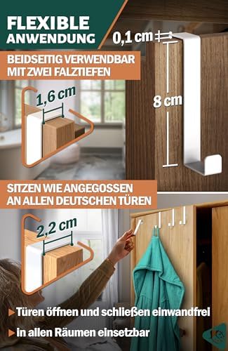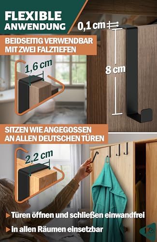 Die Tür Garderobe zeigt sich als äußerst robust und formstabil. Dank des durchdachten Designs lassen sich die Haken problemlos an den meisten deutschen Türen sowie an Schränken einsetzen. Die verlässliche Stabilität macht sie ideal für den täglichen Gebrauch, ohne dass Sie sich Sorgen um das Herunterfallen schwerer Gegenstände machen müssen.