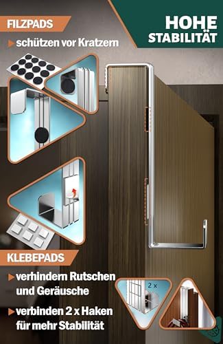 • Schutzpads gegen Kratzer: Ausgestattet mit Filzpads, verhindern sie Beschädigungen an Ihren Türen und bieten rutschfesten Halt.