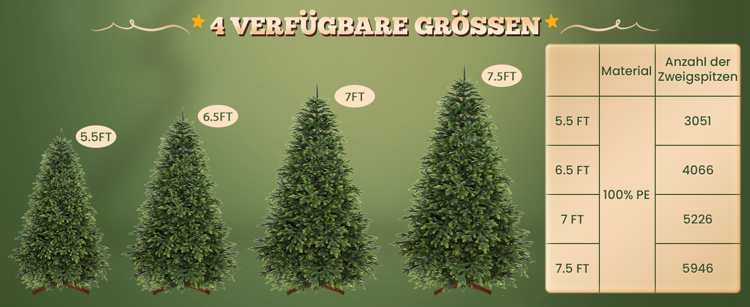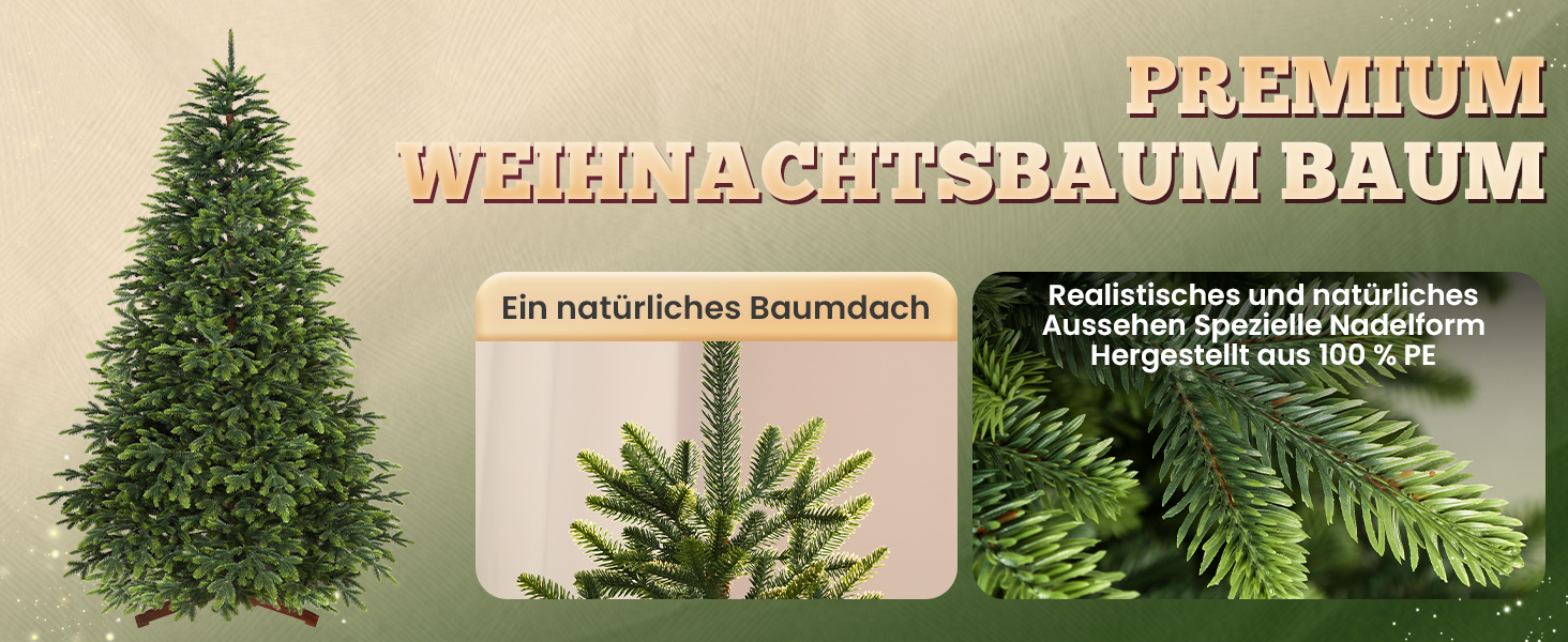 Unser Weihnachtsbaum besteht aus 100% hochwertigem Polyethylen (PE), das ihm eine beeindruckende Robustheit und Langlebigkeit verleiht. Mit 4066 verzweigten Nadeln bietet der Baum ein wunderschönes, volles Erscheinungsbild, das sowohl die Augen anspricht als auch Ihre ökologischen Werte respektiert. Dieser künstliche Weihnachtsbaum verliert keine Nadeln, sodass Sie jedes Jahr die festliche Atmosphäre ohne das lästige Aufräumen genießen können.