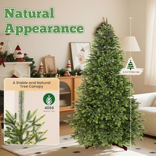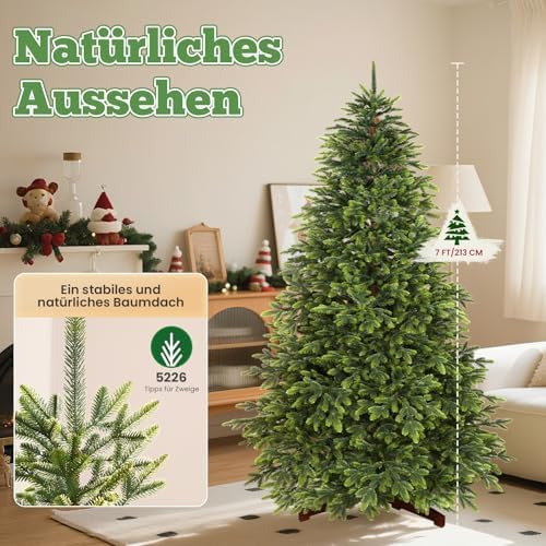 SHareconn Künstlicher Weihnachtsbaum 195cm – Naturgetreu mit 4066 Spitzen, dichte Zweige und Holzständer für schnelle Au