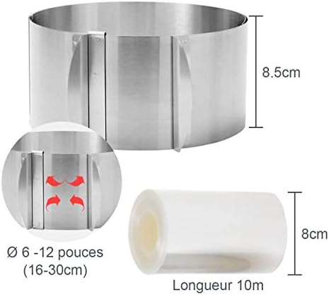 Tortenring Edelstahl verstellbar 16-30cm – ideal für Schichttorten, inkl. Tortenrandfolie!