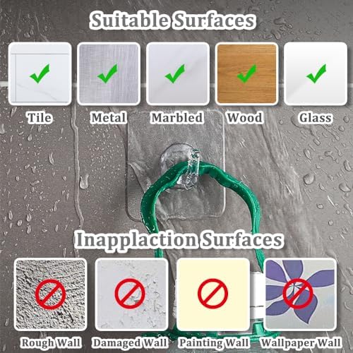 Dieser Klebehaken eignet sich hervorragend für eine Vielzahl von glatten Oberflächen, einschließlich Metall, Keramikfliesen, Glas und Holz. Beachten Sie jedoch, dass er nicht für gestrichene Wände, Tapeten oder rauhe Oberflächen geeignet ist. Er ist die perfekte Lösung für jeden Raum in Ihrem Zuhause oder Büro, und bietet Ihnen die Möglichkeit, Ordnung zu schaffen und gleichzeitig Ihre Dekoration hervorzuheben.